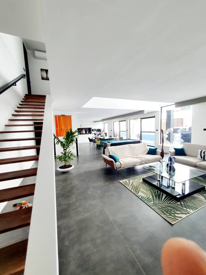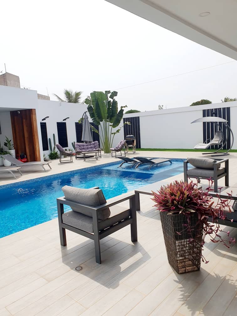 _*★SUBLIME VILLA DUPLEX MEUBLÉE À VENDRE★*_ *Une magnifique villa de luxe, style américain ou européen. construite sur presque 1 lot en angle rue composée de ::* *RDC ::* salon interne bien meublé +1 cuisine intégrée dans le salon avec des arrangements et un comptoir + 1 autre cuisine avec des placards d'arrangement+ 1 escalier qui conduit au premier étage. *R+1::* 3 chambres dont la première est une suite avec une baignoire, Un lit, toilettes à style européen.Et bien d'autres éléments avec tout le confort et luxe, les 2 autres chambres avec leurs sanitaires et meubles+1 buanderie+bar 1 piscine 1garage souterrain muni d'une porte fl électronique toilettes visiteurs Un local réservé au gardien avec des équipements de contrôle Des espaces par endroit gazonnés Des caméras de surveillance Etc.... *PRIX ::* 420 Millions à débattre *PAPIER ::* Titre Foncier *ZONE ::* ADIDOGOMÉ